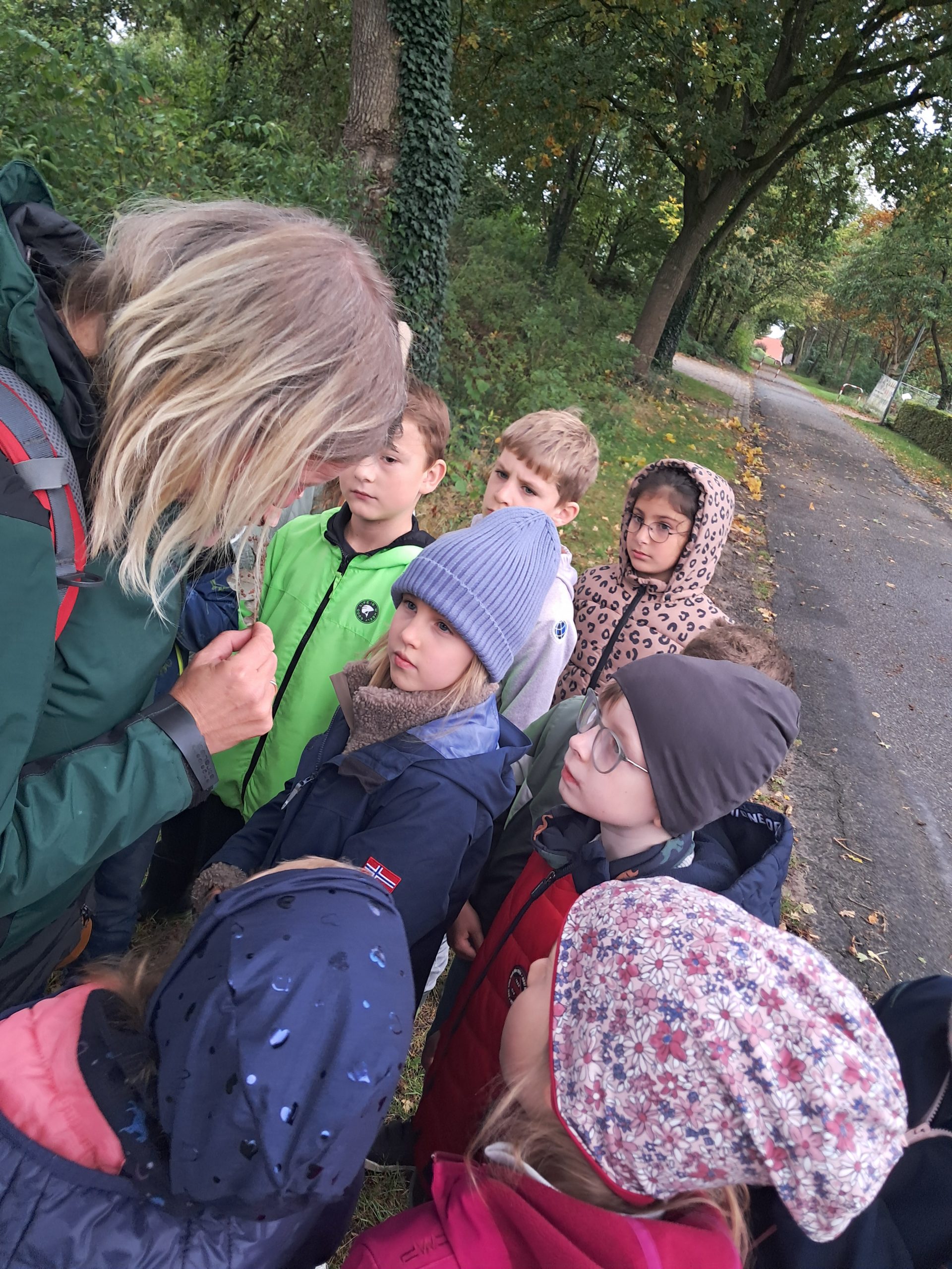 Am 6. Oktober besuchten die Klassen 2 gemeinsam mit der Naturführerin Frau Dr. Silke Hirndorf vom Naturparkt Moor-Veenland den Wesuweer Wald. Dort gab es einiges zu entdecken. Die Zweitklässler genossen den Spaziergang durch die schön gefärbten Bäume. Besonders die vielen unterschiedlichen Pilze und einige kleine Spinnen weckten das Intereesse unserer kleinen Naturforscher.