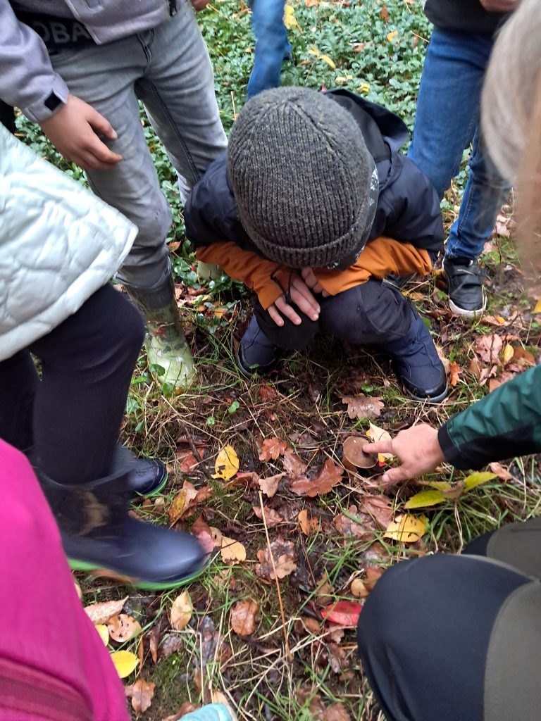 Am 6. Oktober besuchten die Klassen 2 gemeinsam mit der Naturführerin Frau Dr. Silke Hirndorf vom Naturparkt Moor-Veenland den Wesuweer Wald. Dort gab es einiges zu entdecken. Die Zweitklässler genossen den Spaziergang durch die schön gefärbten Bäume. Besonders die vielen unterschiedlichen Pilze und einige kleine Spinnen weckten das Intereesse unserer kleinen Naturforscher.